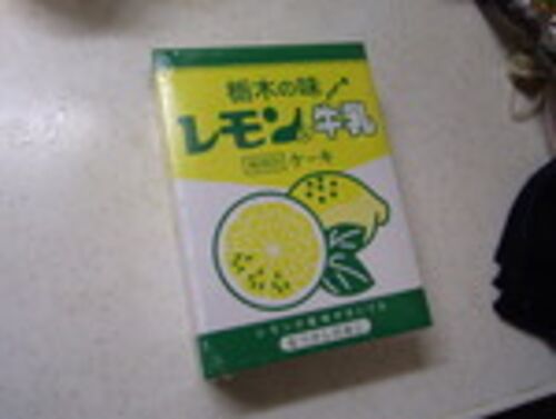 先日、法事で栃木県に行ったときのおみやげ。 正確には、レモン入り牛乳ケーキ。だって、レモン牛乳とは別の会社だし、登録商標のこともあるんだろうな。 でも、レモン牛乳にはレモンが入っていないので、こっちのがえらいかもしれない。 味は、レモン牛乳。…