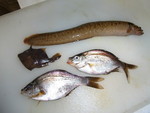 ぼくはというと、小さなカワハギ(これがひたすらエサをとってしまう)とギンポ。ということで、夕べは天ぷら。